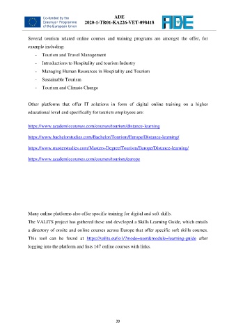 Several tourism related online courses and training programs are amongst the offer, for