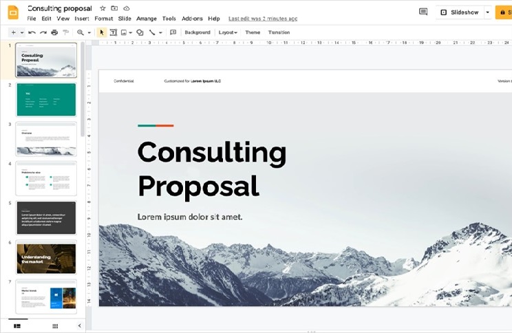 Step 3: Google Slides records your presentation automatically as you create it. At the top of the slideshow screen, you'll see that it was saved to your Google Drive and when you made the last edit.