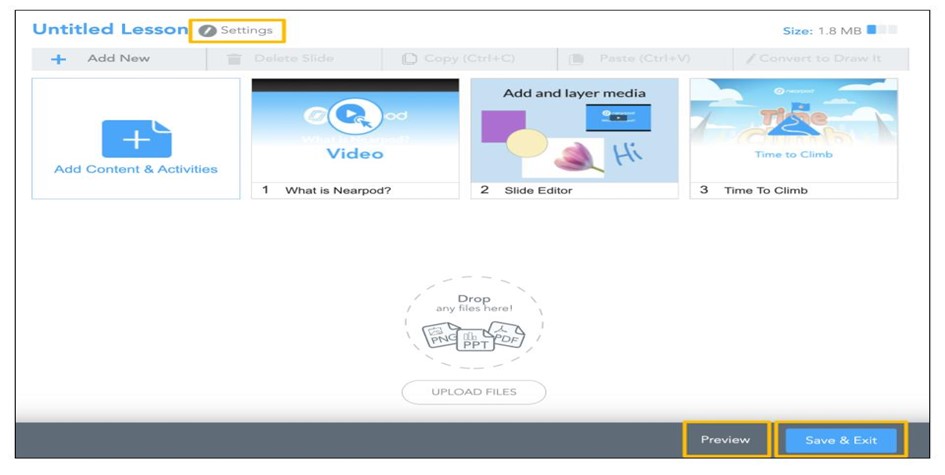 Step 8 - After editing your lesson details and completing your lesson, click "Save & Exit" to save your lesson and return to My Library. Or click "Preview" to see what your lesson will look like from a student perspective.