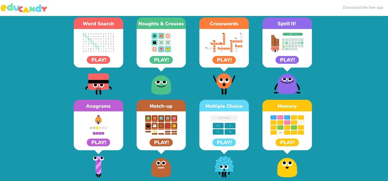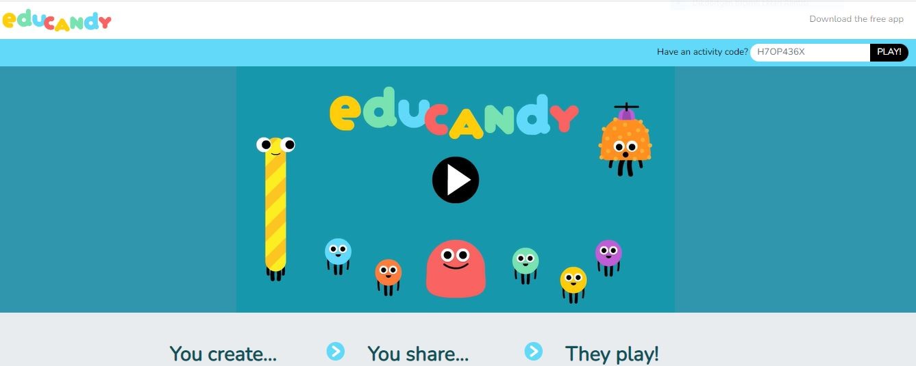 One of the most popular applications (https://educandy.com/ )for for creating interactive learning games, Educandy allows turning the classroom content into great learning activities. Teachers can download the Educandy Studio App and enter the relevant vocabulary and images or questions and aswers to create unique games. Once the activity is created, a code is generated for students to play the game on their own devices. It is also possible to embed the created games on desired websites. Students can also download Educandy Play App or go to the website to play. Interactive boards can be used to play the created games.