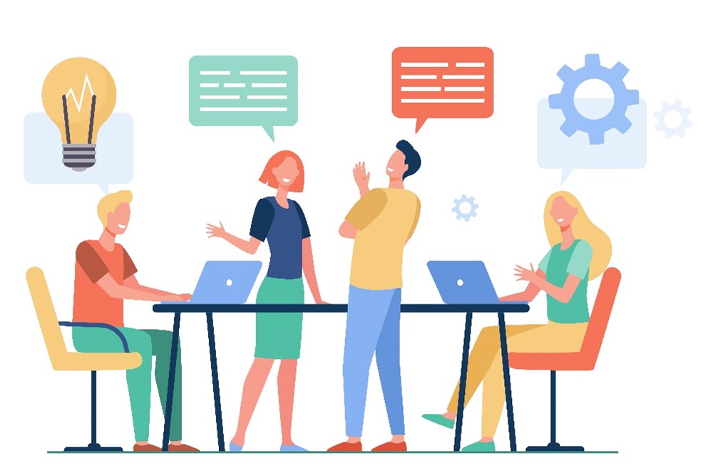 Source: https://www.freepik.com/free-vector/business-team-planning-working-process-flat-vector-illustration-cartoon-colleagues-talking-sharing-thoughts-smiling-company-office-teamwork-workflow-concept_10606194.htm#query=business-team-planning-working-process-flat-vector-illustration-cartoon-colleagues-talking-sharing-thoughts-smiling-company-office-teamwork-workflow-concept&position=0&from_view=search&track=sph